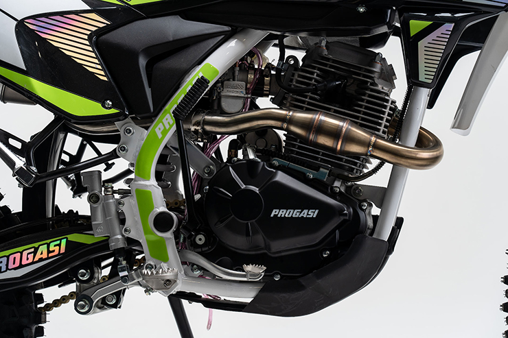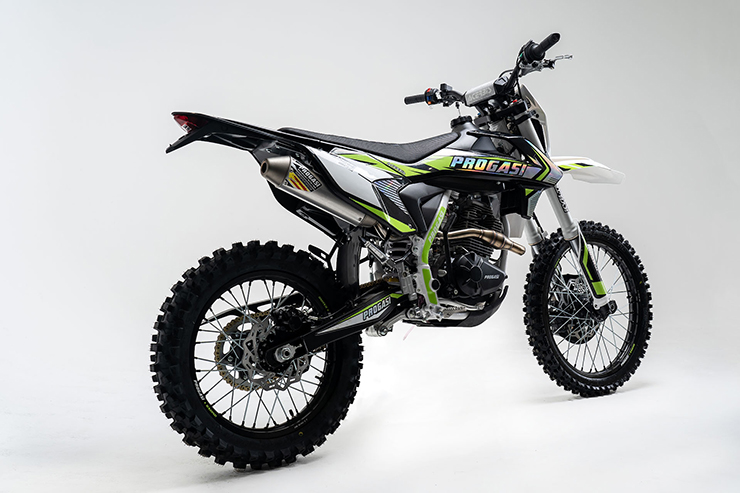 Двигатель отличается еще большей эффективностью во всем диапазоне оборотов, а достичь этого помогают спортивный карбюратор Nibbi Racing 32 и фирменный выхлоп PROGASI Exhaust System Megabomb. Последнее слово в названии выхлопной системы явно порадует многих фанатов эндуро, что позволяет не только достичь максимума от выхлопной системы, но и задать выхлопу нужный тембр – а это музыка для ушей райдера (еще бы собаки так считали).