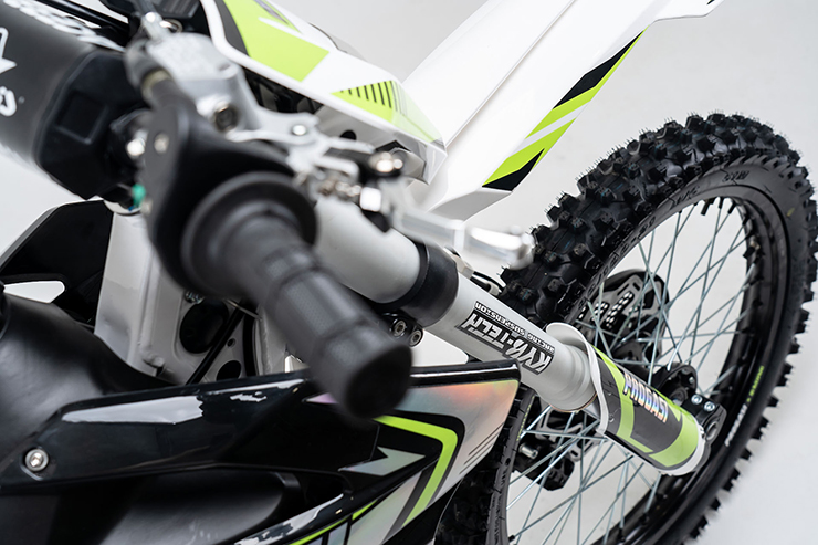 Колеса остались в прежних размерах 21/18 и комплектуются проверенной и качественной резиной Kenda 80/100 спереди и 110/90 сзади, готовой для ошиповки и подходящей для зимней эксплуатации. Усиленные алюминиевые обода имеют «буксаторы», удерживающие шину от проворачивания при агрессивной езде. А чтобы не «пробуксовывал» сам райдер – традиционно присутствует нескользящее седло PROGASI, выполненное по технологии Acerbis anti-slip grip со специальным водонепроницаемым покрытием, способным выдержать и дождь, и... хотя, обойдемся дождем. Обычным!
