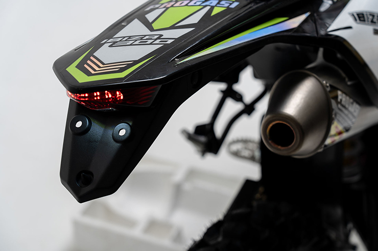 PROGASI Ibiza 300 не растерял плюсов, свойственных предшественнику и предоставляет владельцу усиленную хромомолибденовую раму, оснащенную пластиковыми элементами, защищающего и саму раму, и экипировку райдера. Кроме того, мотоцикл получил и новый пластик, еще более надежный и стойкий к царапинам.