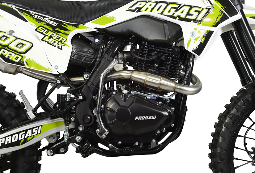Мотоцикл, покоривший сердца тысяч райдеров, возвращается в обновлённом облике! Мы представляем рестайлинг нашей самой популярной модели — ещё больше эмоций, скорости и адреналина. PROGASI Super Max 300 PRO NG создан для динамичного и уверенного движения по пересечённой местности, где решающее значение имеют мощность, контроль и надёжность. PROGASI Super Max 300 PRO NG — выбор как продвинутых новичков, так и опытных райдеров. Мощный и надежный двигатель Zongshen PR300 с воздушным охлаждением, балансировочным валом и 5-ступенчатой трансмиссией в сочетании со спортивным карбюратором Nibbi Racing Black PE30 и выхлопом PROGASI Exhaust System формируют идеальный баланс характеристик и обеспечивают мощность 27 л.с.